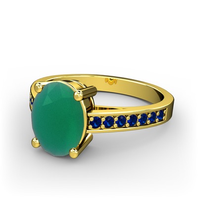 Kök zümrüt ve lab safir 14 ayar altın yüzük