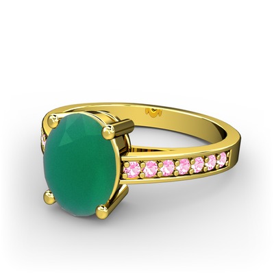 Kök zümrüt ve pembe kuvars 8 ayar altın yüzük