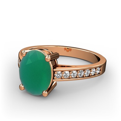Kök zümrüt ve pırlanta 925 ayar rose altın kaplama gümüş yüzük (0.21 karat)