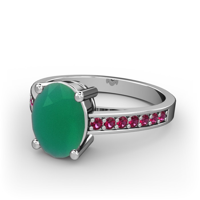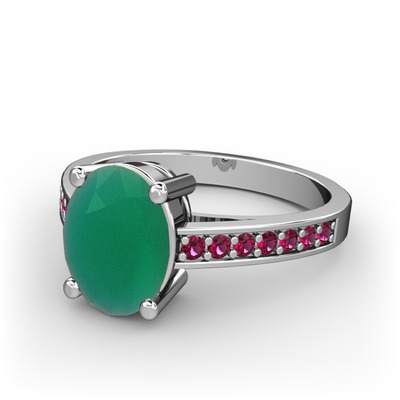 Kök zümrüt ve rodolit garnet 18 ayar beyaz altın yüzük