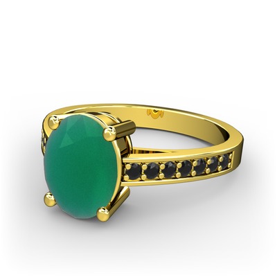 Kök zümrüt ve siyah zirkon 14 ayar altın yüzük