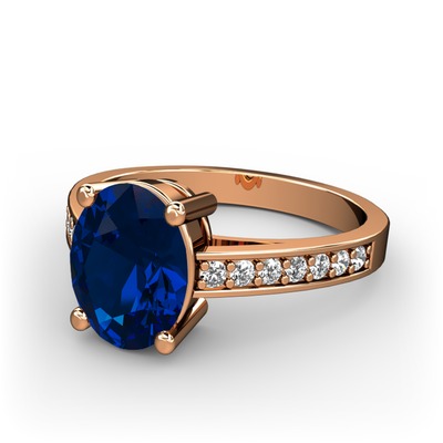 Lab safir ve pırlanta 8 ayar rose altın yüzük (0.21 karat)