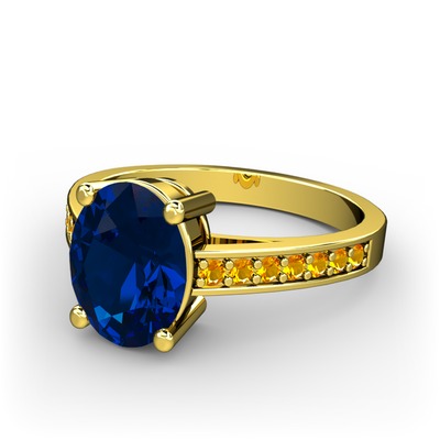 Lab safir ve sitrin 8 ayar altın yüzük