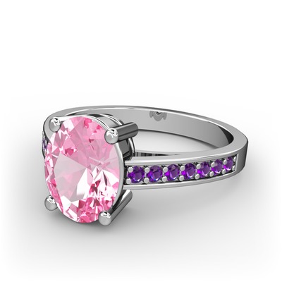 Pembe kuvars ve ametist 14 ayar beyaz altın yüzük