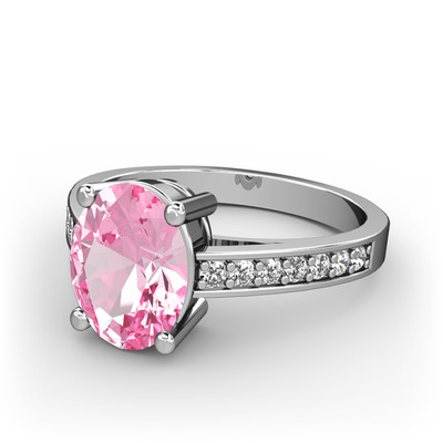 Pembe kuvars ve beyaz zirkon 18 ayar beyaz altın yüzük