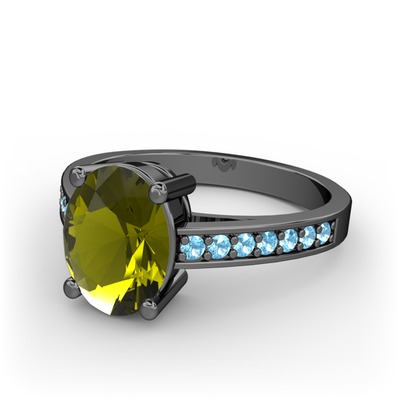 Peridot ve akuamarin 925 ayar siyah rodyum kaplama gümüş yüzük