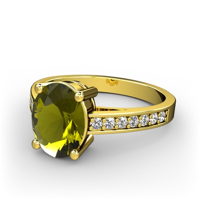 Peridot ve beyaz zirkon 925 ayar altın kaplama gümüş yüzük
