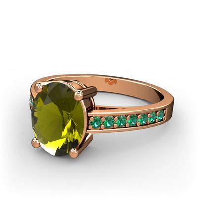 Peridot ve yeşil kuvars 14 ayar rose altın yüzük