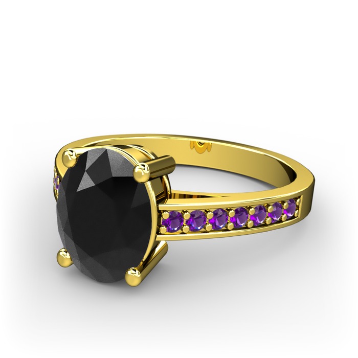 Siyah zirkon ve ametist 14 ayar altın yüzük