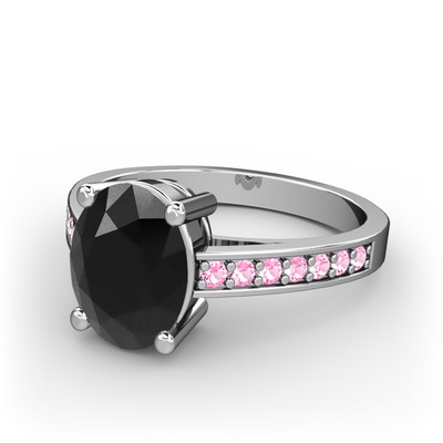 Siyah zirkon ve pembe kuvars 925 ayar gümüş yüzük