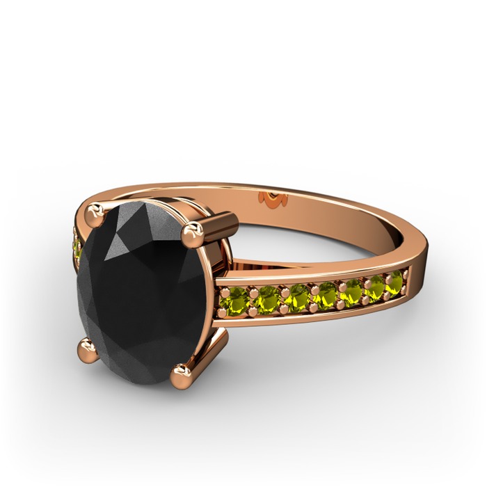 Siyah zirkon ve peridot 8 ayar rose altın yüzük