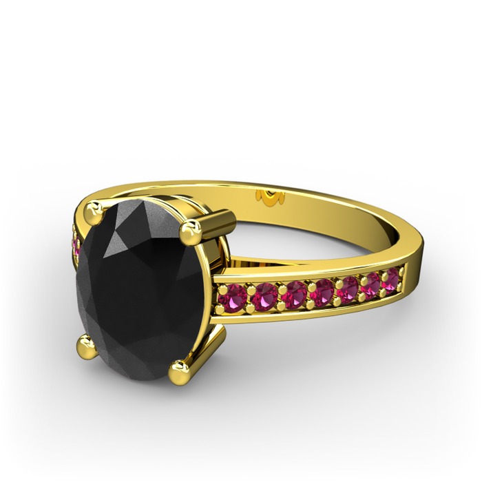 Siyah zirkon ve rodolit garnet 18 ayar altın yüzük