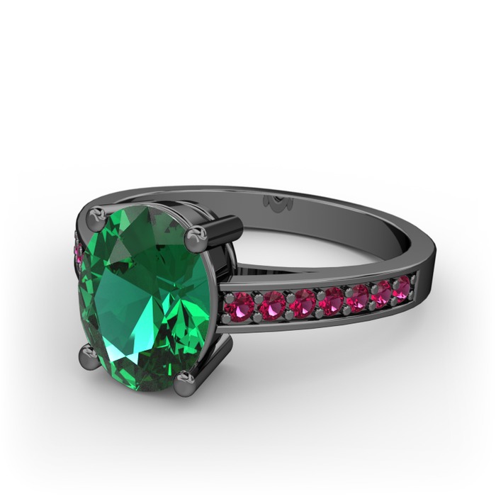 Yeşil kuvars ve rodolit garnet 925 ayar siyah rodyum kaplama gümüş yüzük