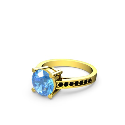 Akuamarin ve siyah zirkon 925 ayar altın kaplama gümüş yüzük