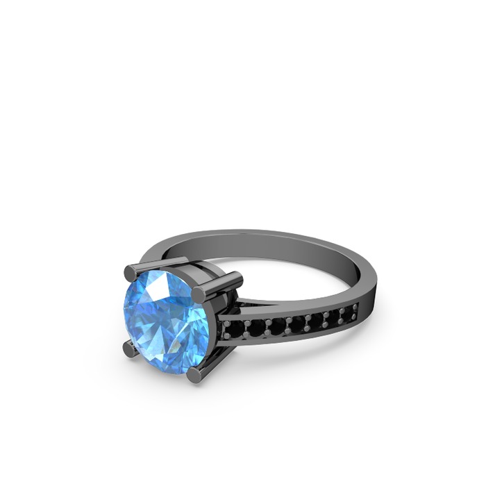 Akuamarin ve siyah zirkon 925 ayar siyah rodyum kaplama gümüş yüzük