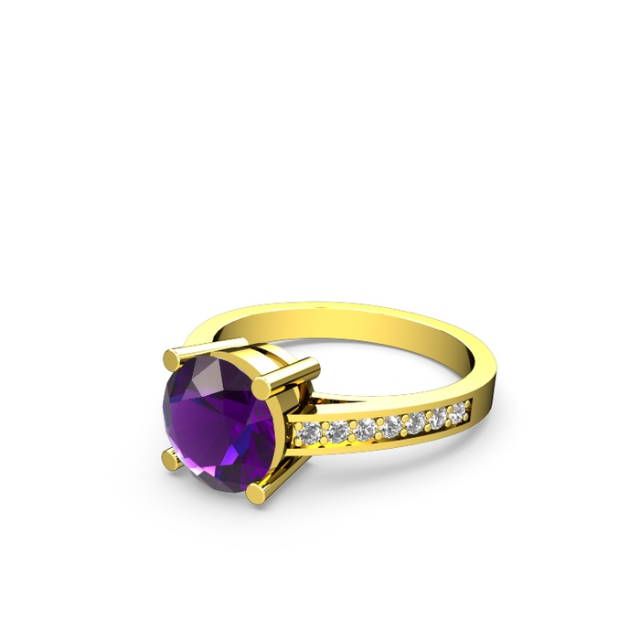 Ametist ve beyaz zirkon 18 ayar altın yüzük