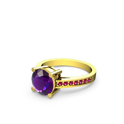 Ametist ve rodolit garnet 18 ayar altın yüzük