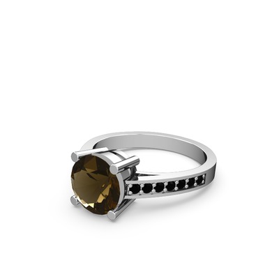 Dumanlı kuvars ve siyah zirkon 8 ayar beyaz altın yüzük