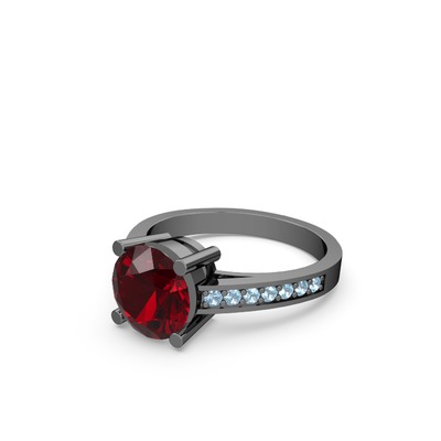 Garnet ve akuamarin 925 ayar siyah rodyum kaplama gümüş yüzük
