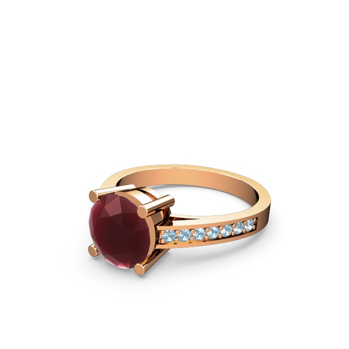 Kök yakut ve akuamarin 8 ayar rose altın yüzük