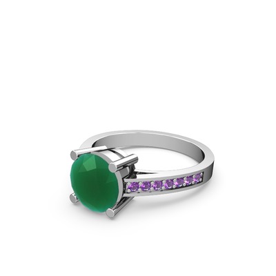 Kök zümrüt ve ametist 14 ayar beyaz altın yüzük