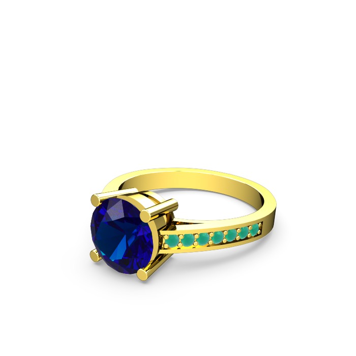 Lab safir ve kök zümrüt 14 ayar altın yüzük