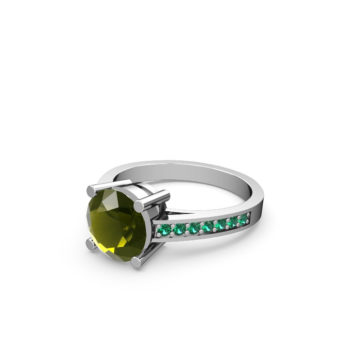 Peridot ve yeşil kuvars 18 ayar beyaz altın yüzük