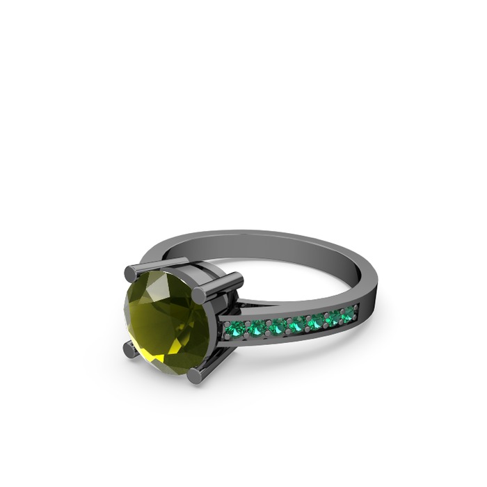 Peridot ve yeşil kuvars 925 ayar siyah rodyum kaplama gümüş yüzük