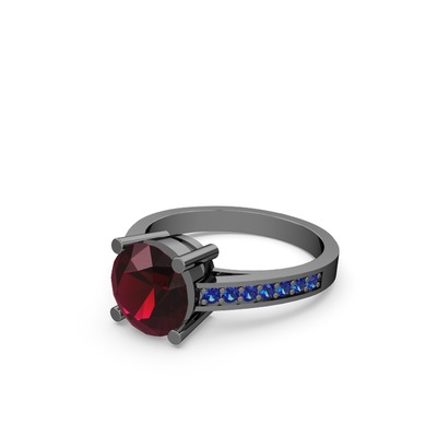 Rodolit garnet ve lab safir 925 ayar siyah rodyum kaplama gümüş yüzük