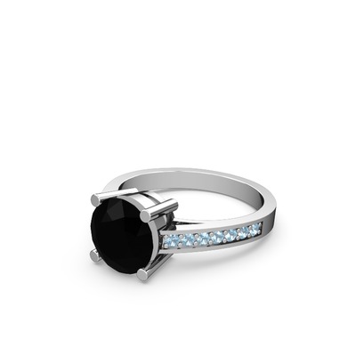 Siyah zirkon ve akuamarin 8 ayar beyaz altın yüzük
