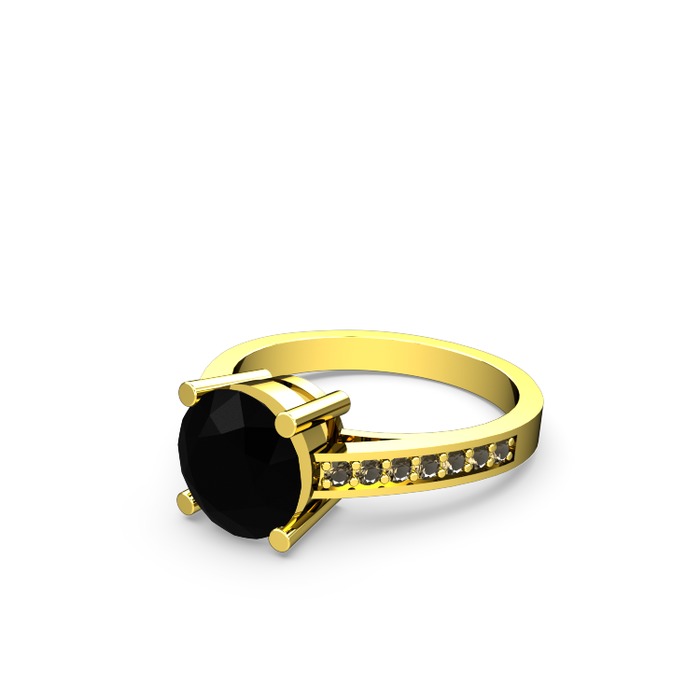 Siyah zirkon ve dumanlı kuvars 8 ayar altın yüzük