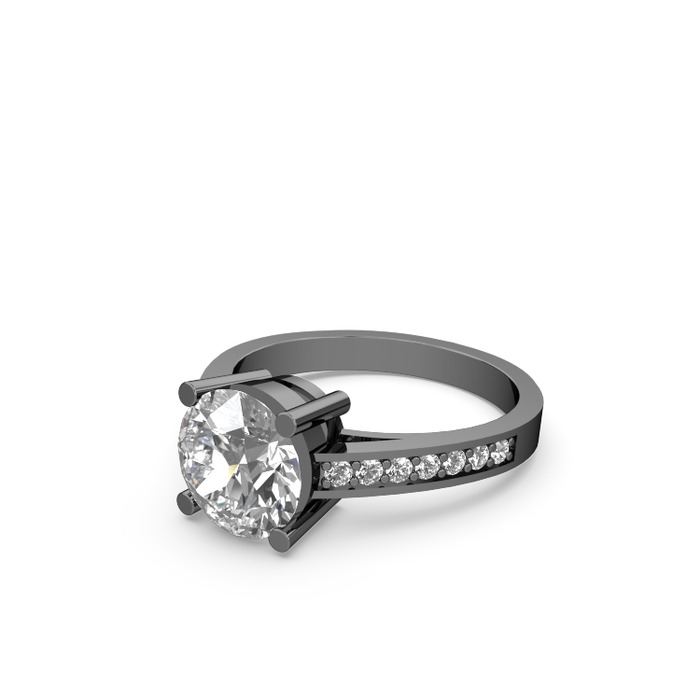 Swarovski ve pırlanta 925 ayar siyah rodyum kaplama gümüş yüzük (0.21 karat)