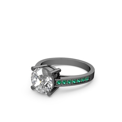 Swarovski ve yeşil kuvars 925 ayar siyah rodyum kaplama gümüş yüzük