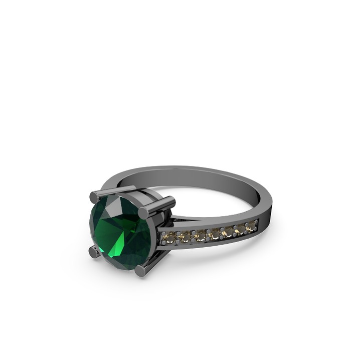 Yeşil kuvars ve dumanlı kuvars 925 ayar siyah rodyum kaplama gümüş yüzük