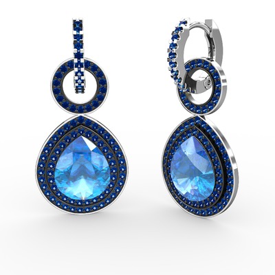 Akuamarin ve lab safir 18 ayar beyaz altın küpe