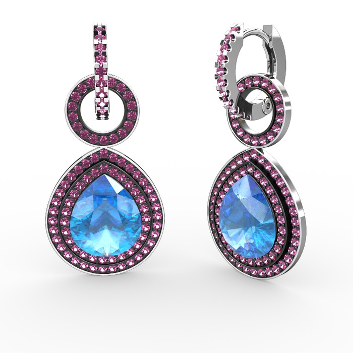 Akuamarin ve rodolit garnet 925 ayar gümüş küpe