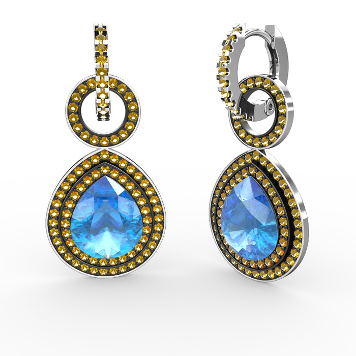 Akuamarin ve sitrin 14 ayar beyaz altın küpe