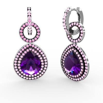 Ametist ve pembe kuvars 8 ayar beyaz altın küpe