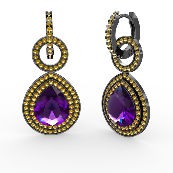 Ametist ve sitrin 925 ayar siyah rodyum kaplama gümüş küpe