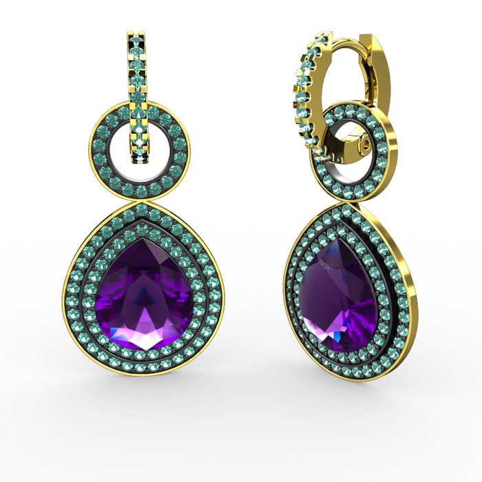 Ametist ve yeşil kuvars 8 ayar altın küpe