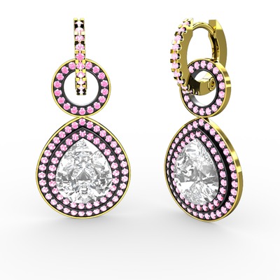 Beyaz zirkon ve pembe kuvars 8 ayar altın küpe