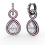 Beyaz zirkon ve pembe kuvars 925 ayar siyah rodyum kaplama gümüş küpe