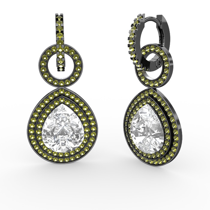 Beyaz zirkon ve peridot 925 ayar siyah rodyum kaplama gümüş küpe