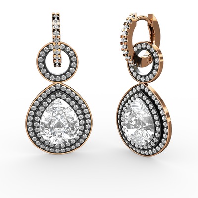 Beyaz zirkon ve pırlanta 14 ayar rose altın küpe (1.98 karat)