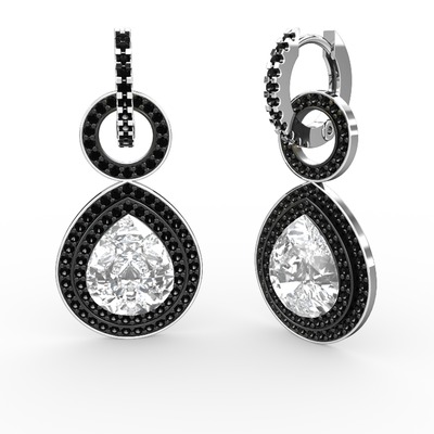 Beyaz zirkon ve siyah zirkon 925 ayar gümüş küpe