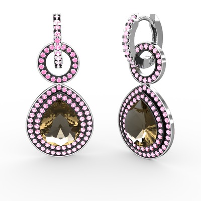 Dumanlı kuvars ve pembe kuvars 14 ayar beyaz altın küpe