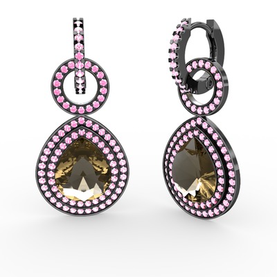 Dumanlı kuvars ve pembe kuvars 925 ayar siyah rodyum kaplama gümüş küpe