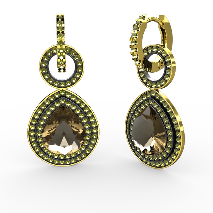 Dumanlı kuvars ve peridot 8 ayar altın küpe