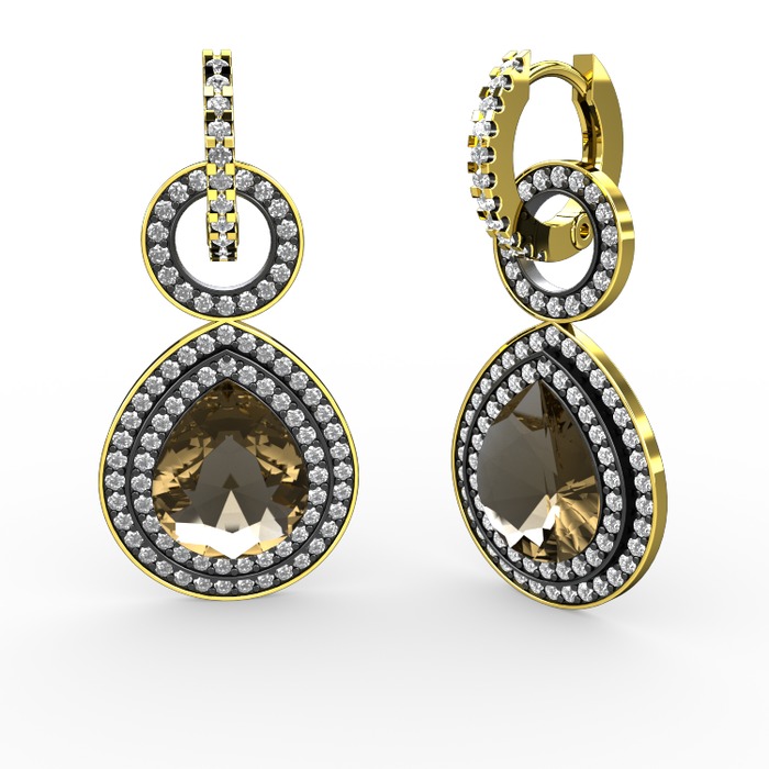 Dumanlı kuvars ve pırlanta 14 ayar altın küpe (1.98 karat)
