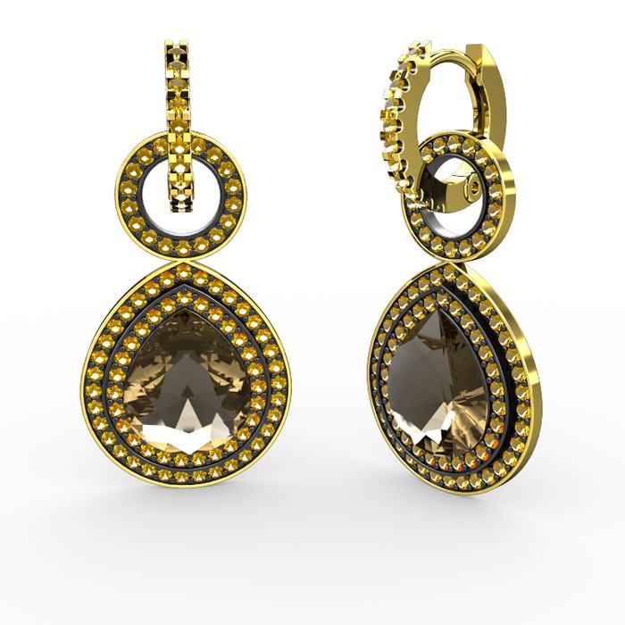 Dumanlı kuvars ve sitrin 18 ayar altın küpe